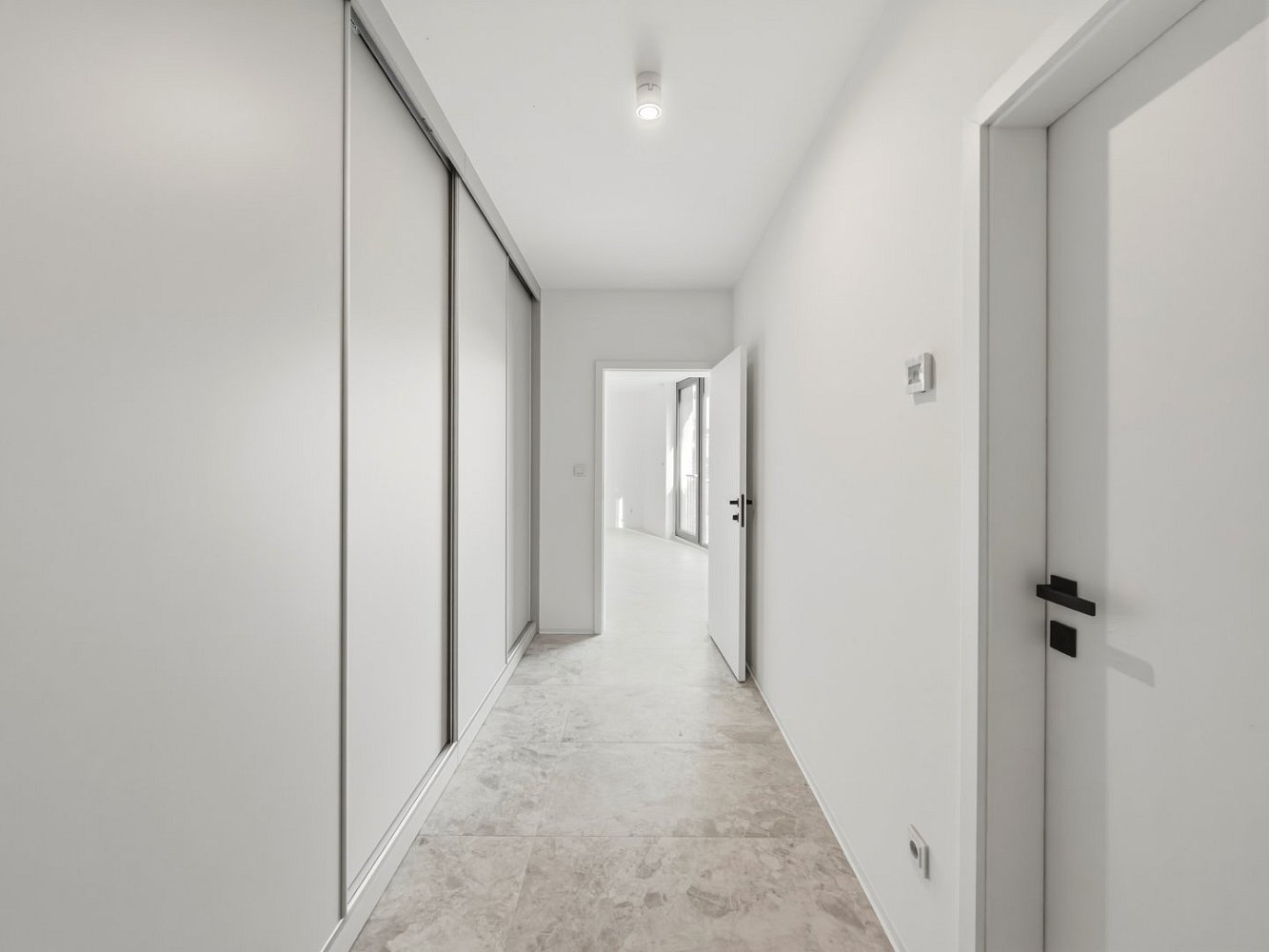 Byt je nový a nabízí komfortní bydlení s důrazem na kvalitu a praktičnost. Dominantou bytu je luxusní nová kuchyňská linka, která je moderně zpracovaná a nabízí dostatek pracovního i úložného prostoru. Na chodbě se nachází velká vestavěná skříň, která poskytuje praktické řešení úložného prostoru a zároveň působí velmi elegantně.